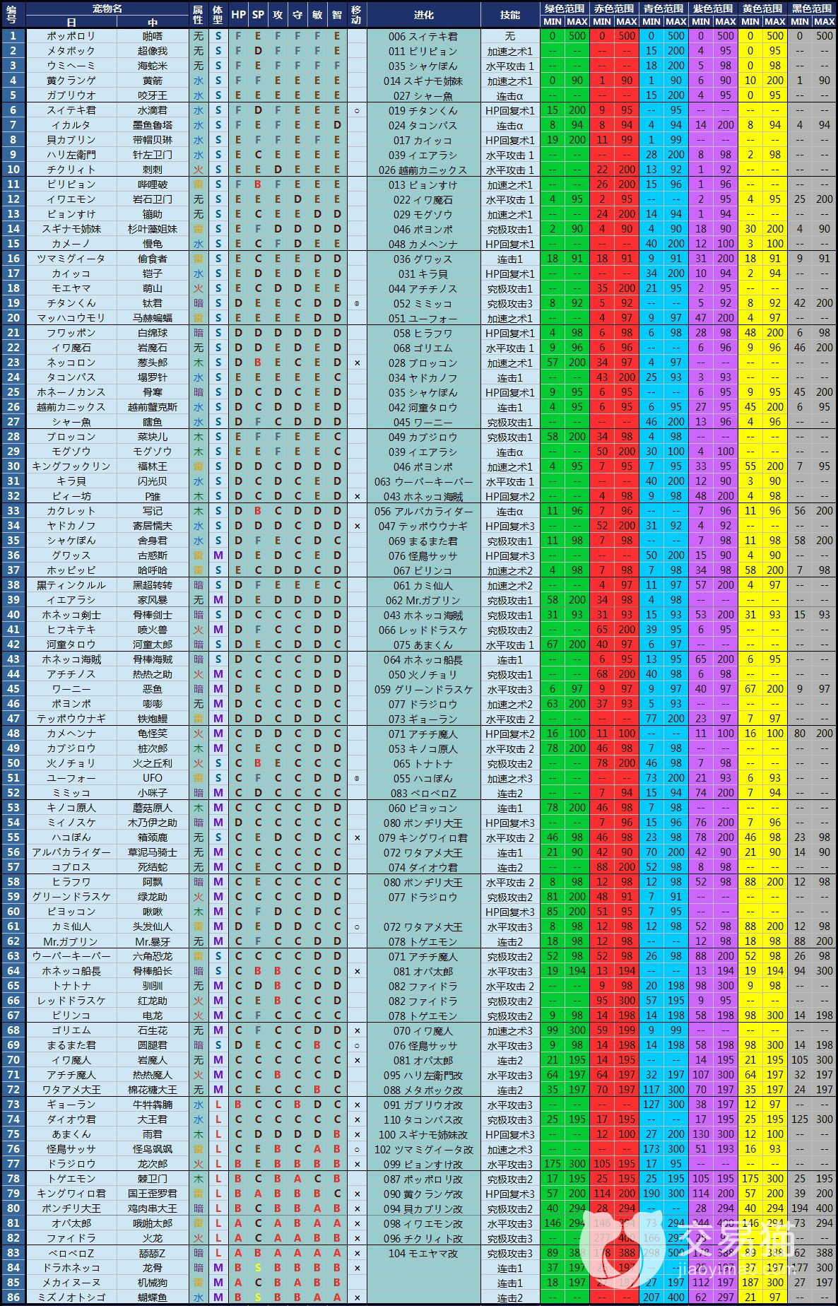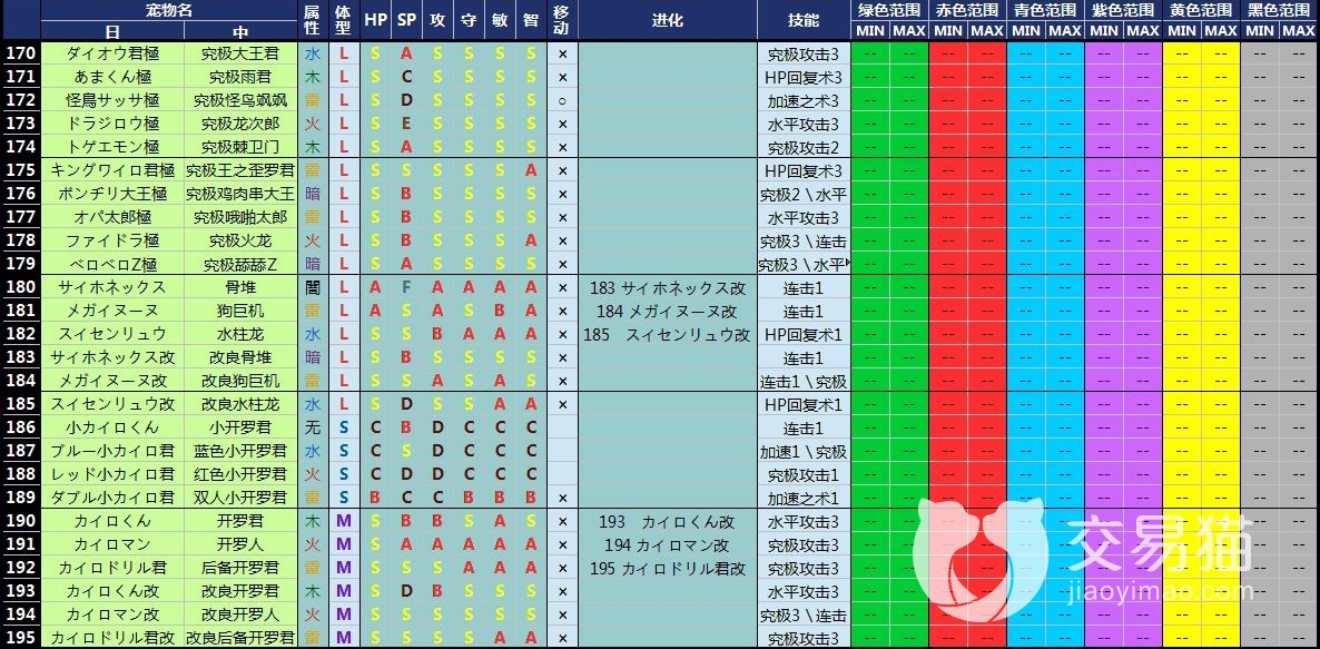 好了,以上的大航海探险物语真宠排名就已经放完了,上面有许多比较详细的列表,属性和数值范围,以及技能,还有体型和名字等等,全都写在了里面,这是目前以来的所有宠物了,如果有兴趣的话也可以作为收藏学习使用,本篇就写到这里,我们下篇再见吧。