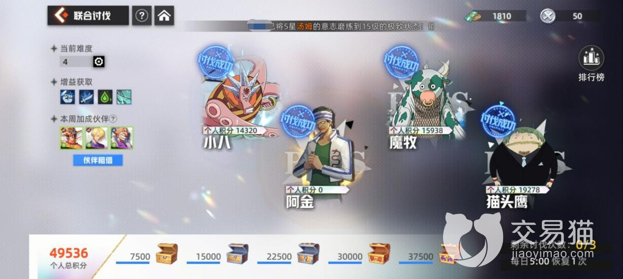 1、联合讨伐就是游戏中的公会的副本BOSS,在完成挑战后可以获得船团奖章、钻石、招募券作为奖励。该道具的主要作用是用来在商店兑换稀有道具,比如角色碎片、装备等等。