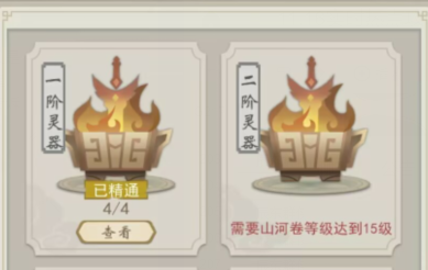 获得武器之后,可以点击游戏界面的“灵山”,然后滑动屏幕,会看到一个“炼器室”,点击进去之后就会看到有一阶到五阶的五个标志,点进去就可以按照不同的等级开放并且制作不同等级的武器了。