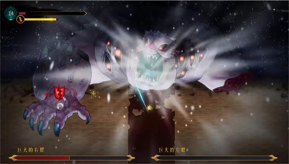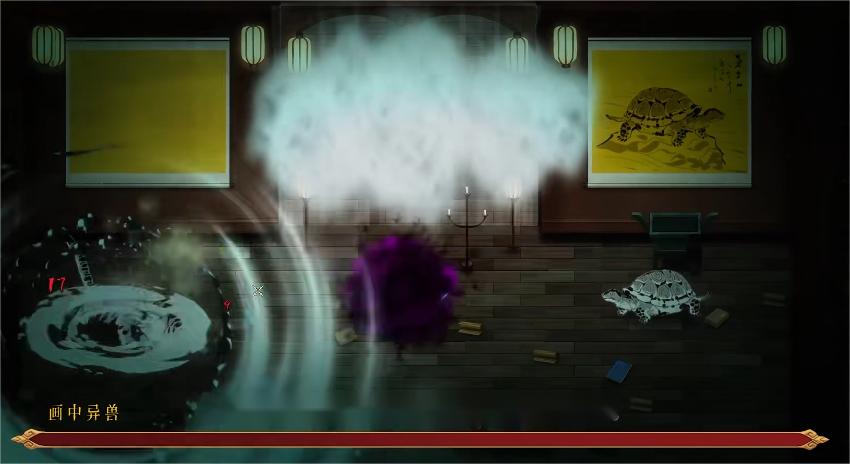 在地图上根据关卡不同也分为了五种风格,每种风格中都有着独特的交互元素,比如猪之章同时供玩家攻击的两条巨大手臂,又比如鹤之章boss出场前两只从画中跑出来的异兽,以及鹤之章boss关本身能把玩家吸入其中的黑洞,剩下的龟,虎和龙章节也都有着诸多有趣的元素等待玩家发掘,也不愧它8个G的内存,确实是内容丰富,创意满满。
