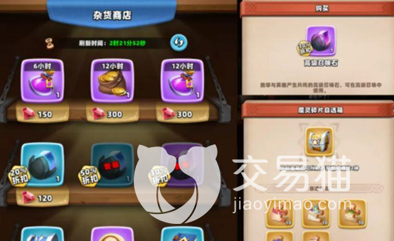 (1)杂货商店:前期买锤子、橙色契约、高级抽奖石以及许愿币。