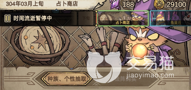 想要更换种族的话就需要玩家在游戏中等待到每一年时间的三月份,在三月份上半个月的时候会出现一个叫占卜商店的特殊商店,需要玩家进入到商店中去,进入到商店就能够看到抽取怪物种族和抽取怪物个性两个不同道具,抽取完成之后回到游戏大厅当中。