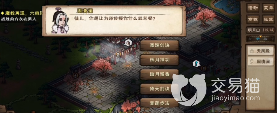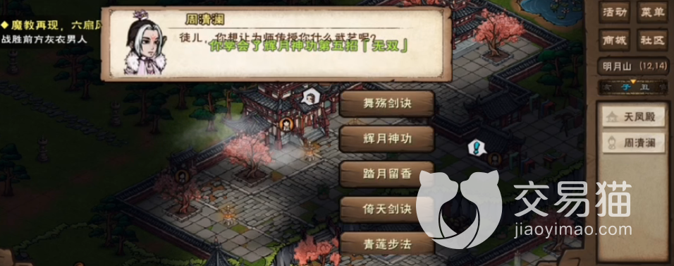 是泠月宫的进阶剑法,女性角色使用的时候招式动作非常好看,其中的拭刃浣纱只是增加战斗,泛舟采莲就是拭刃浣纱的追加技能,有百分之四十五的机会可以在释放拭刃浣纱之后在追加百分之八十的伤害值,最后的西子捧心是有百分之四十的机会可以发出反击,对于那种血量低的敌方来说有一击制敌的效果。