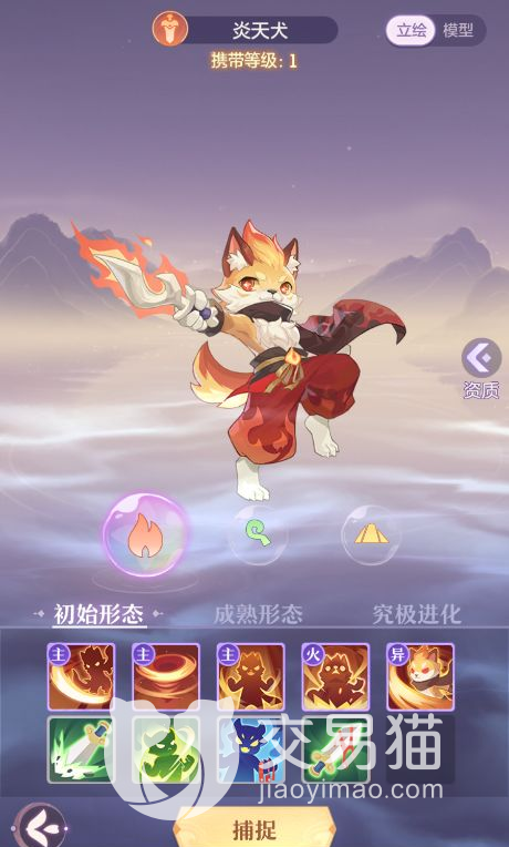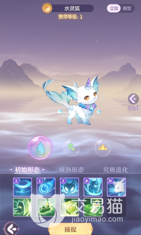 2、灵狐系—头灵狐:拥有天赋土之向,带有小技能单体控制,大招群体控制。