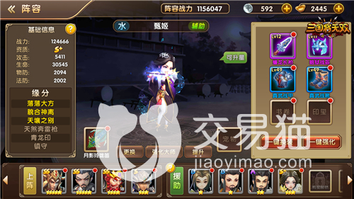 甄姬在游戏内是担任辅助性的角色,拥有很强大的增伤能力,各个属性点都分配地很均衡,她的技能不仅仅可以提供很多的防御属性,同时还能降低敌方的防御属性,从而提高团队的输出,几乎是全阶段都强势的一位武将,新手们抽到是可以培养的,放入到很多阵容中的。