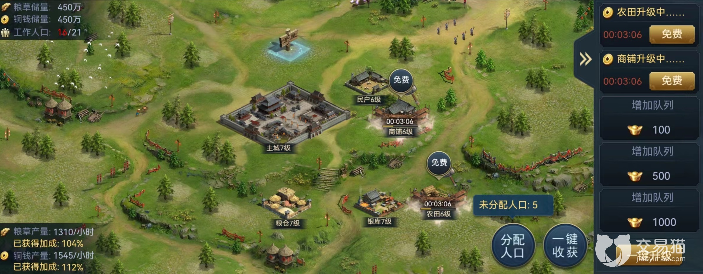 此外在主线推图过程中,每通关一个关卡也有少量铜币赠送,虽然数量不多但是积累起来也很可观,最主要的是可以持续获得,一直往前推就一直有奖励。还有一个不能忽视的就是封地建设,在封地中建立起商铺后,就会有源源不断的铜币生产出来,额外搭配人口后还将提高获取效率。只要每天进去收取一下,积累起来也是极其可观的。