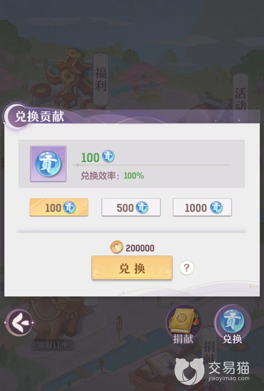 2、帮贡获取:在进入到一个帮派系统中后,点击主页中的捐献按钮,此时会跳转入“兑换功能”,玩家们可以通过消耗金币的方式来换取大量的帮贡。也可以通过参加帮派的活动来换取帮贡、金币以及物品等奖励。