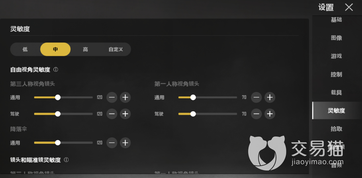 灵敏度的选项里有很多可以调试的灵敏度,大家需要把游戏里的垂直的灵敏度点在0.5,还有把基本的灵敏度选择在49左右,其他还有很多的灵敏度就不要动了。