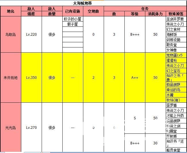 大海贼地带的开拓之地是游戏后期掉落最好的地方,所以可以刷一刷,但是怪的等级和数量都极其高,建议有一些练度以后再去。