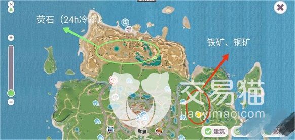 其实无瑕萤石的位置并没有那么难找,无瑕萤石位于小镇地图的最北边类似荒漠的地方。那个地方有一个温泉,在温泉的旁边常出现我们所需要的无瑕萤石。这边特别提示,为什么去到了无暇萤石的刷新地方却没有看到萤石的存在呢?是因为萤石刷新的时间比较久,每次挖完后需要24个小时才会得到刷新,因此玩家们需要注意,如果被挖走了需要整整一天的时间萤石才会再次出现。