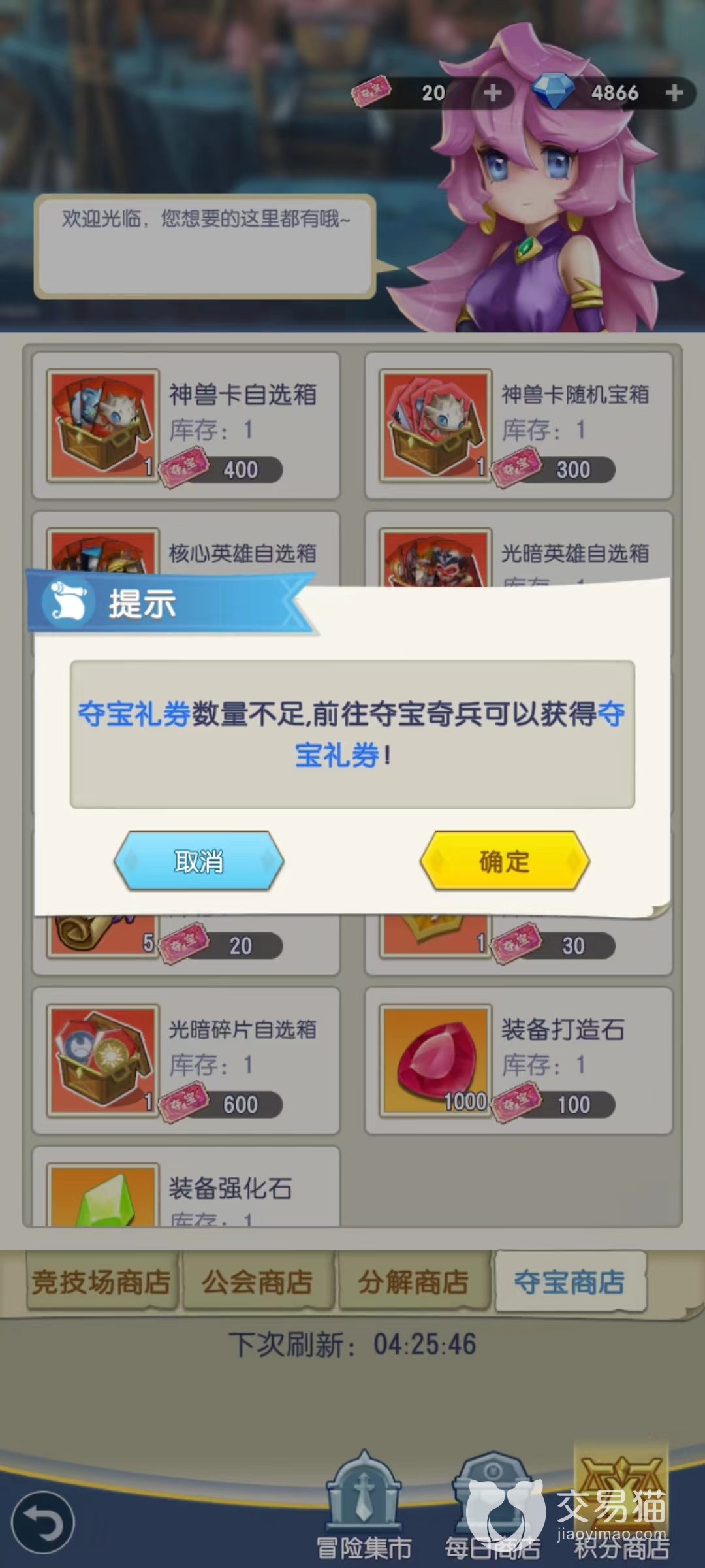 但是在前期奖励比较丰厚的时候,尤其是7日目标还存在的时候,完成指定任务就能够领取到各种各样的奖励,但是只存在于开服前7天,后续无法持续获得。夺宝奇兵获取的夺宝券可以在夺宝商店里兑换奖励,只需要30张券就能兑换一块阵营召唤令牌,还是非常划算的。