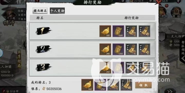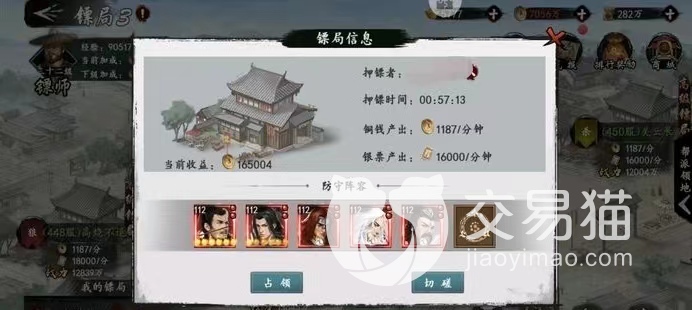 镖局的规矩也是简而易懂,只要占领镖局时间越久收益越高,并且保持连胜就可以在第二天领取到大量的铜币。建议前期的玩家尽量不要挑战排名高的队伍,每天在排名靠后的镖局里混个铜币啥的也是好的。