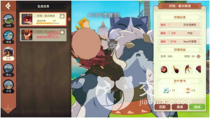 狩猎时刻这款游戏主要还是以打怪为主,玩家在里面的目标就是能够成为厉害的猎人,驯服各种凶猛的野怪。这些怪物有容易击败的小怪和终极大BOSS,每次击败它们之后,都可以获得一定的资源。当然,有些资源也可以通过玩家日常的采矿和野外收集获得。