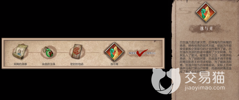 1、【青丝暮雪】玩家在猪之章第一个boss那里获得道具‘染血的玉佩’、二号boss那里获得‘阿青的画像’,清图小怪的时候,可以随机捡取一个密封的信函,将三个道具并合就可以解锁该成就。