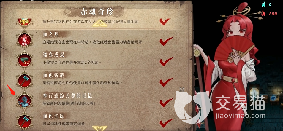 只需要通过商店购买即可,售卖它的商店可以通过点击新NPC血媚娘进入。可以看到购买它只需要付出击败红魂即可,这种材料游戏过程中都会有掉落。