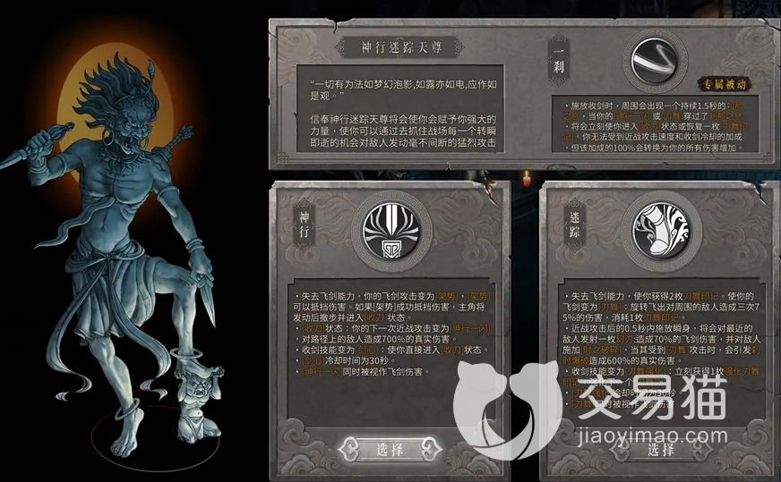 购买过后,来到大门前,新佛像已经出现,点击它后即可从对应的两种职业任选一个,可以看到它的被动与两种职业都有着紧密的联系,拾取特定物品即可刷新两种职业的强化能力。