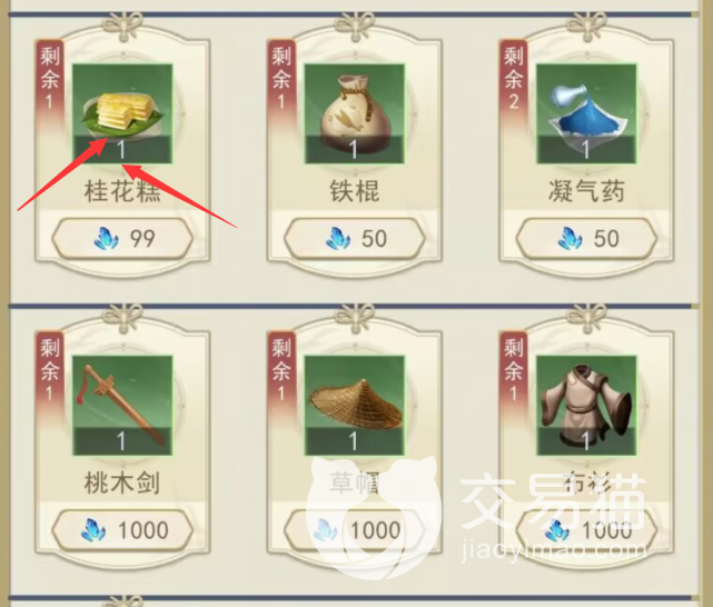 接着我们再进入这个商店,然后就会看到里面的里面第一个卖的东西就是桂花糕,点击它购买就可以了,获得这个桂花糕之后,先不要使用,到后续玩家会碰到一个叫做田小侯的NPC,他的支线任务就会用到这块桂花糕了,所以玩家记得先保存好哦。