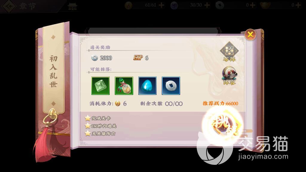 各位在完成了本轮挑战之后,可以直接开启后续的支线任务,大家也可以在战斗当中获得丰富的道具奖励。并且在领取关卡挑战的宝箱时,还会有一定的概率获得高级别的英雄。所以各位在挑战初入乱世这一章节的时候,需要专注的完成每一轮三星任务。