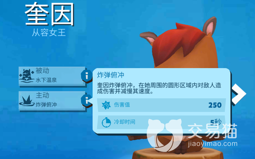 奎因在这款游戏中的形象是一匹雌性小马,她有着从容女王的称号,可以看到其脸上的神态确实很从容。纵观属性面板,奎因的各项属性都很优秀,同时破千的伤害和生命对比其他角色更是傲视群雄!所以要问她厉不厉害,小编可以负责任的告诉大家,至少从属性上,她绝对是一等一厉害的。