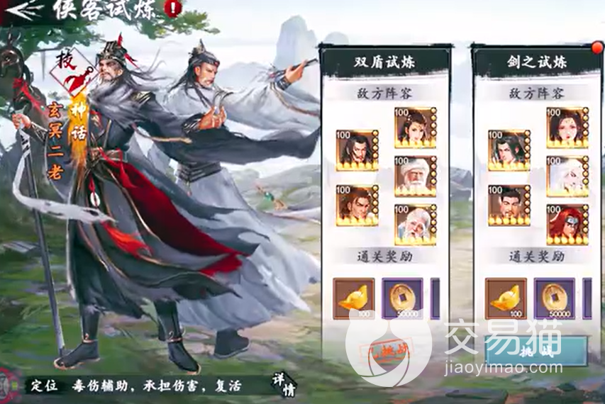 玄冥二老在原著中也是一个焦不离孟,孟不离焦的角色,在游戏中如果你能够让他们一起上场当然也是更加厉害的,玄冥二老中有鹿杖客以及鹤笔翁两个人物,从一开始大家招募的时候这两个人物就是以一个整体出现的,这是一张神话卡,主要要讲的是这两个角色组合在一起进行攻击方式,这两个人不能分开攻击。