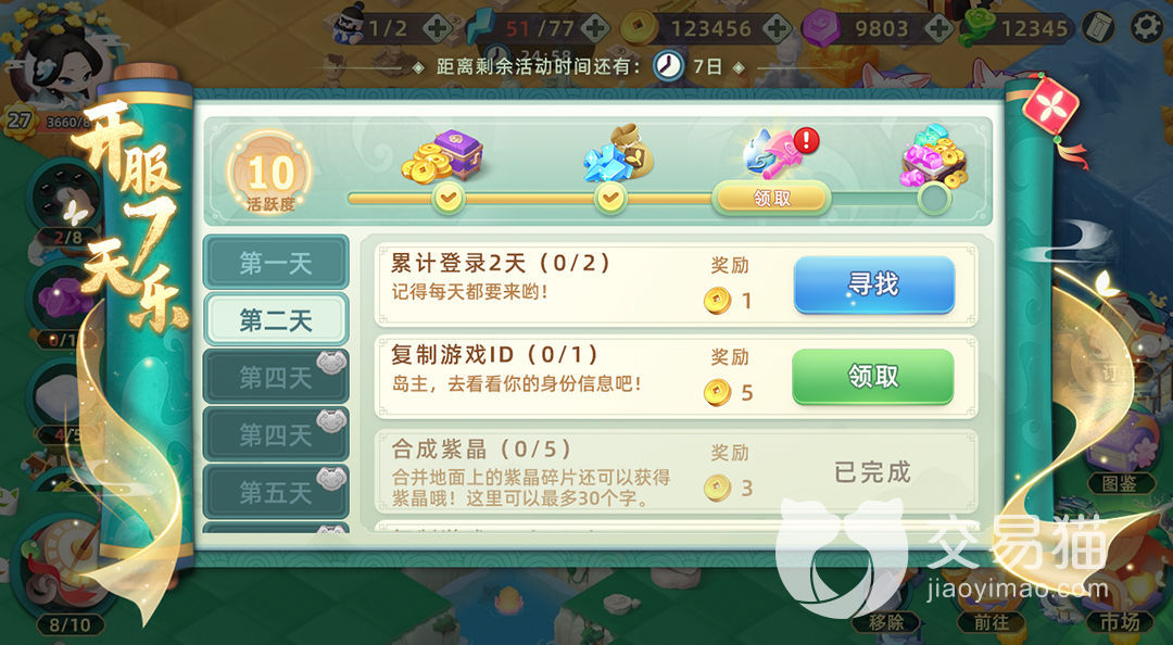 目前创建账号进入游戏后,可以参加很多刚开服活动,首先是七天签到,每天签到完成任务达到七天,就可以解锁像头像,金币等实用道具和资源,因为是限时的,所以越早进入游戏,获得的奖励就越多。然后还有祈愿,只要玩家的岛屿等级超过七级,就可以在开服前七天,每天收获额外的体力,这样每天就可以玩更长时间了。同样的活动还有精神百倍以及体力赠礼等,回体力速度加快,肝帝们磨拳擦掌了。