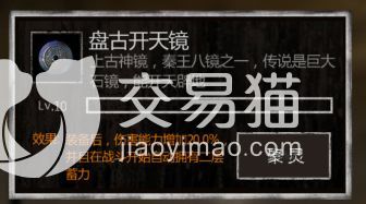 第二个神器就是盘古开天镜,大家要是给它升满级,就可以增加佩带者的20%输出能力,还可以在开局就给队伍增加初始能量,提高队友的战斗力,在后期强度达到一定的时候还可以直接秒杀敌人。