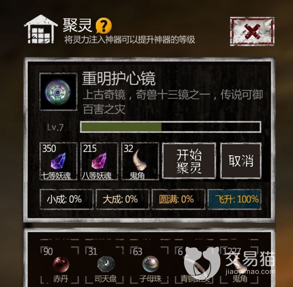 此外有一些特殊的神器在各位获取的时候其本身就是最高级的,是不能再进行聚灵的了。总的来说这个功能就是为道具进行经验的提升,需要注意的是这里建议各位一次次的进行提升,这样经验会相对较多一些。