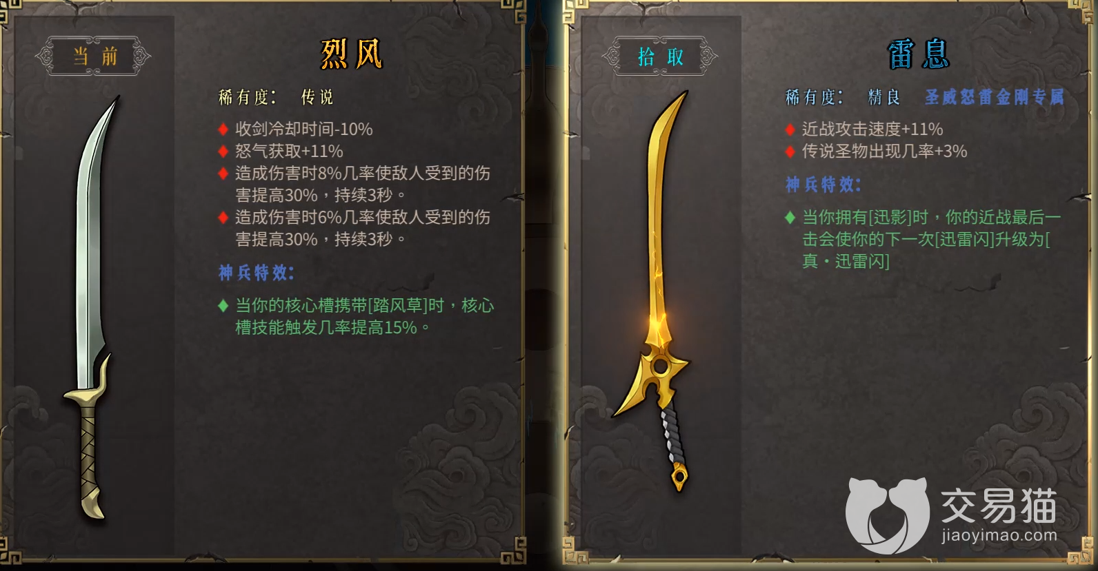 技能选择无论什么玩法恢复效果在高难度下都是必备的,玩家首要点的就是通用几个回复技能,当然雷电的核心雷铠和强化雷电的几个职业技能是一定要找到的,玩家在房间可以roll一次或者sl之后再刷房间roll一次都是可以的一直要将伤害找到,技能最为强大的就是提升伤害的走火入魔摧枯拉朽和疾风骤雨。除了这三个还有不动如山buff提升实力但是会让玩家失去瞬移和这个玩法的相性不符所以一般不要选择,三个找齐伤害在最高难度其实还是不够充足的所以需要绝世神兵的加成,太祖剑的直接暴力的加伤害是所有流派都喜欢的武器,专武的选择是根据你选择蛮雷还是迅雷的流派来选择的,词条需要看玩家的脸了,这个玩法就是纯雷电的伤害所以玩家需要打造词条就是伤害和雷伤加成。