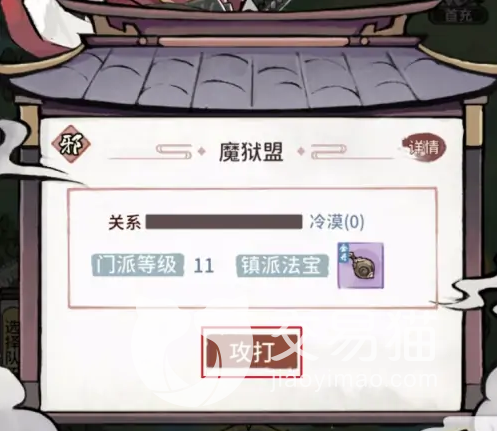 游戏的第一次攻打门派在新手期,你需要攻打魔狱盟,这是游戏中战斗力比较弱的一个邪派。也就是17级邪修联盟的任务,玩家直接点击世界地图找到魔狱盟,然后点击敌方的门派界面,选择攻打,这个任务作为主线的话比较简单,也不能跳过,所以不会对你和其他门派的关系有什么影响。