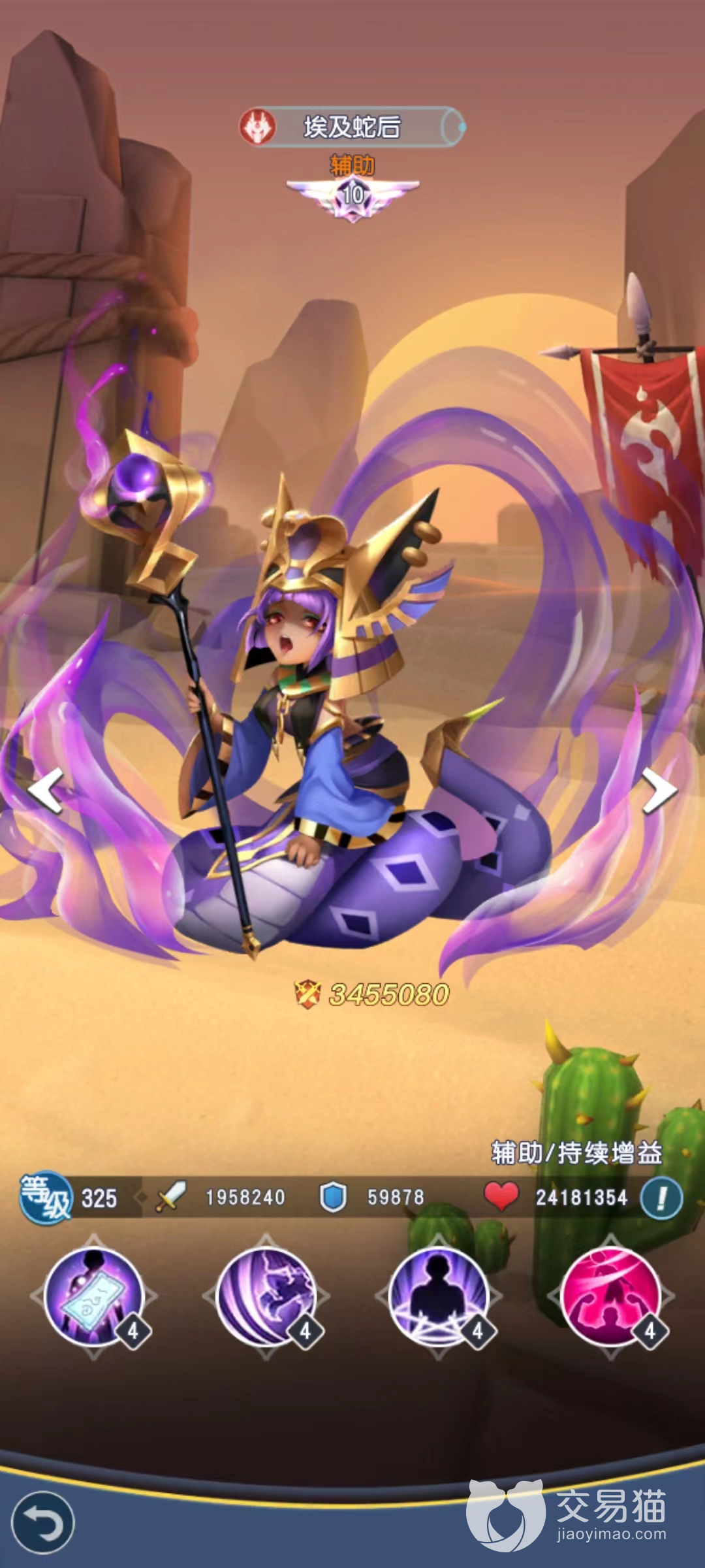 有了羊灵猎手后,其他的搭配就非常简单,包括有狮子王、大灰狼、雪原巨兽和埃及蛇后。其中埃及蛇后属于兽族最顶尖的辅助角色,技能蛇灵祝福,为友方血量最低的目标添加护盾,同时技能升级之后还将有额外的攻击力加成,清除身上的负面状态等效果,更好的辅助其他角色输出。一旦全队总血量过低时,蛇后还将狂花为全体队友清除负面状态。