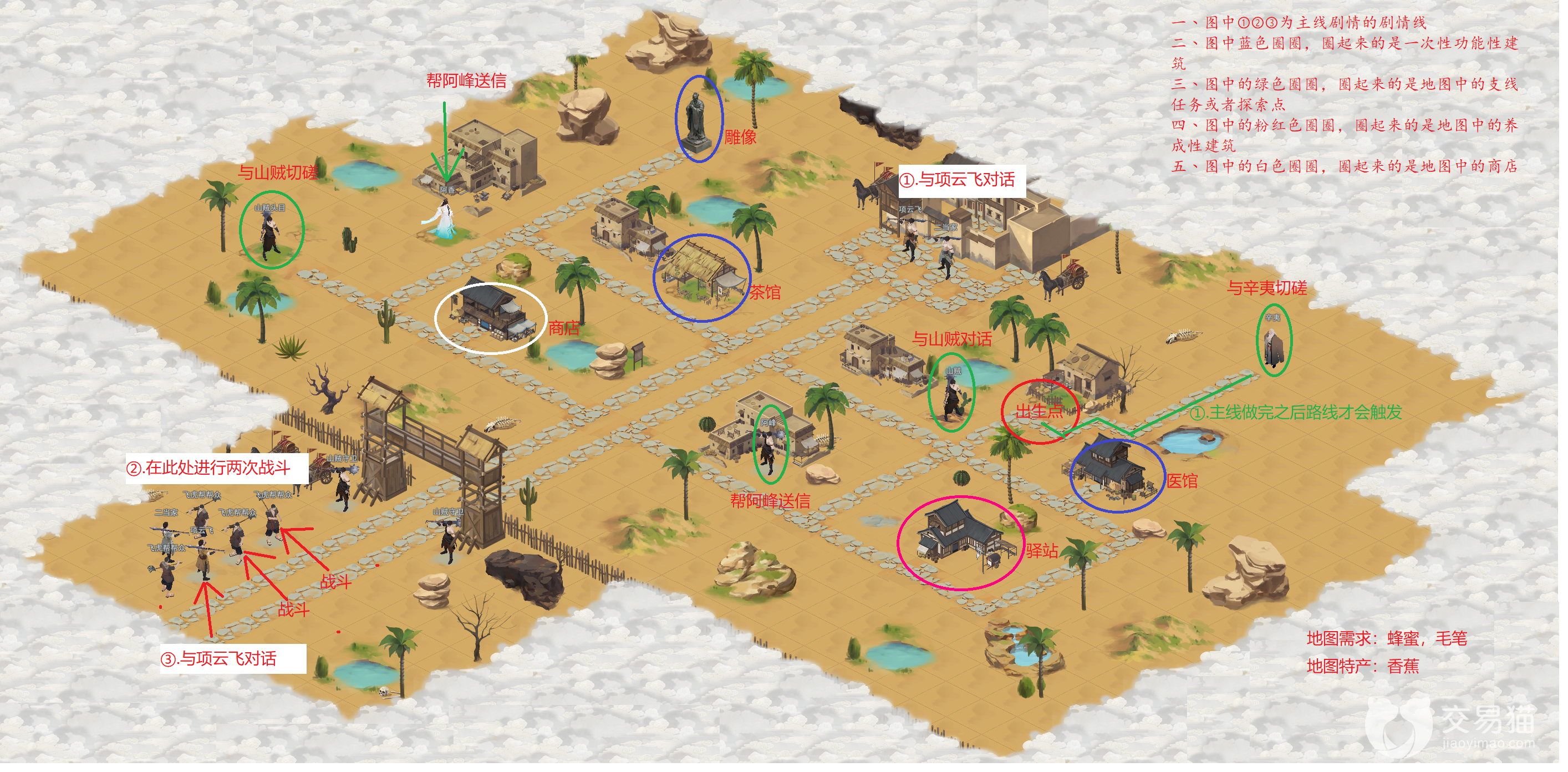 玩家在寻找到项云飞的时候,门口的山贼会拦路敲诈,这个时候会出现三个选择,玩家需要三个选项都选择一遍才能完美通关。玩家在找到项云飞之后跟随着他去山寨门口击退虎帮的帮众,并且替项云飞挡刀完成任务。