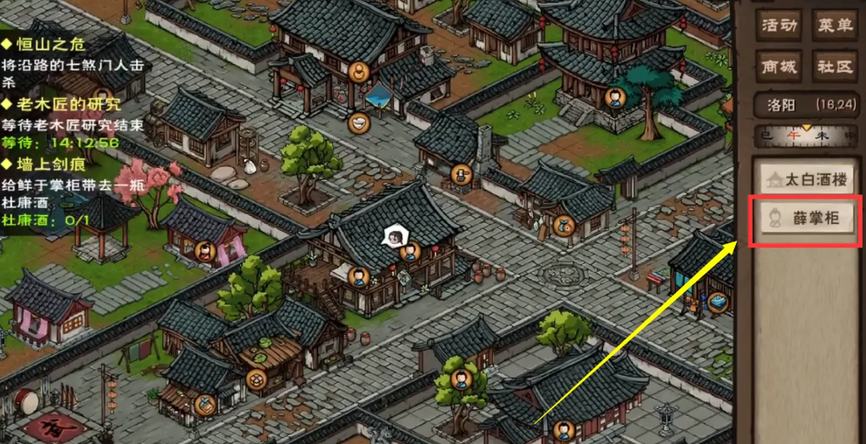 3、玩家来到太白酒楼以后就可以通过右边的设置找到薛掌柜。