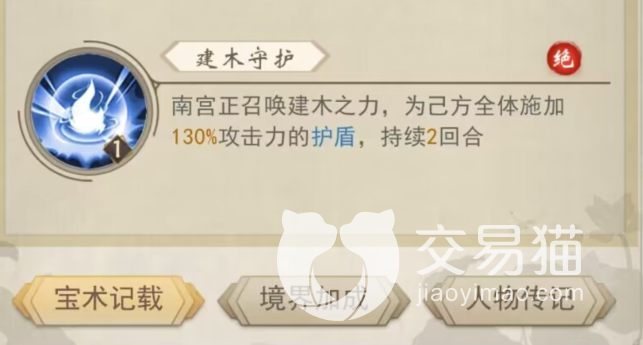 最后一个犹豫了一下,还是选择了南宫正,有玩家说他的技能不好用,其实不然,他作为防御放在前排,在升星之后可以说对面如果单体输出不是很高的话,随便给他配上一个治疗,都不可能被打死,特别是他的绝招“建木守护”,可以在2个回合内给己方全体人员加一个护盾,在防御的同时也保护了队友,如果你手上都是些脆皮的高输出的话,建议养一个。