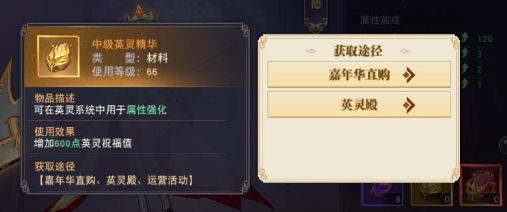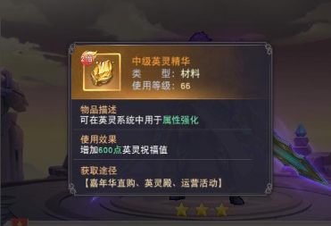 在升级到中等阶段的时候就需要使用中级的精华了,基本上这个精华都是根据大家升级的速度来改变的,中级的精华也恶意同样在英灵殿中挑战英灵获取,但是后面的英灵战斗力高不会太好打。