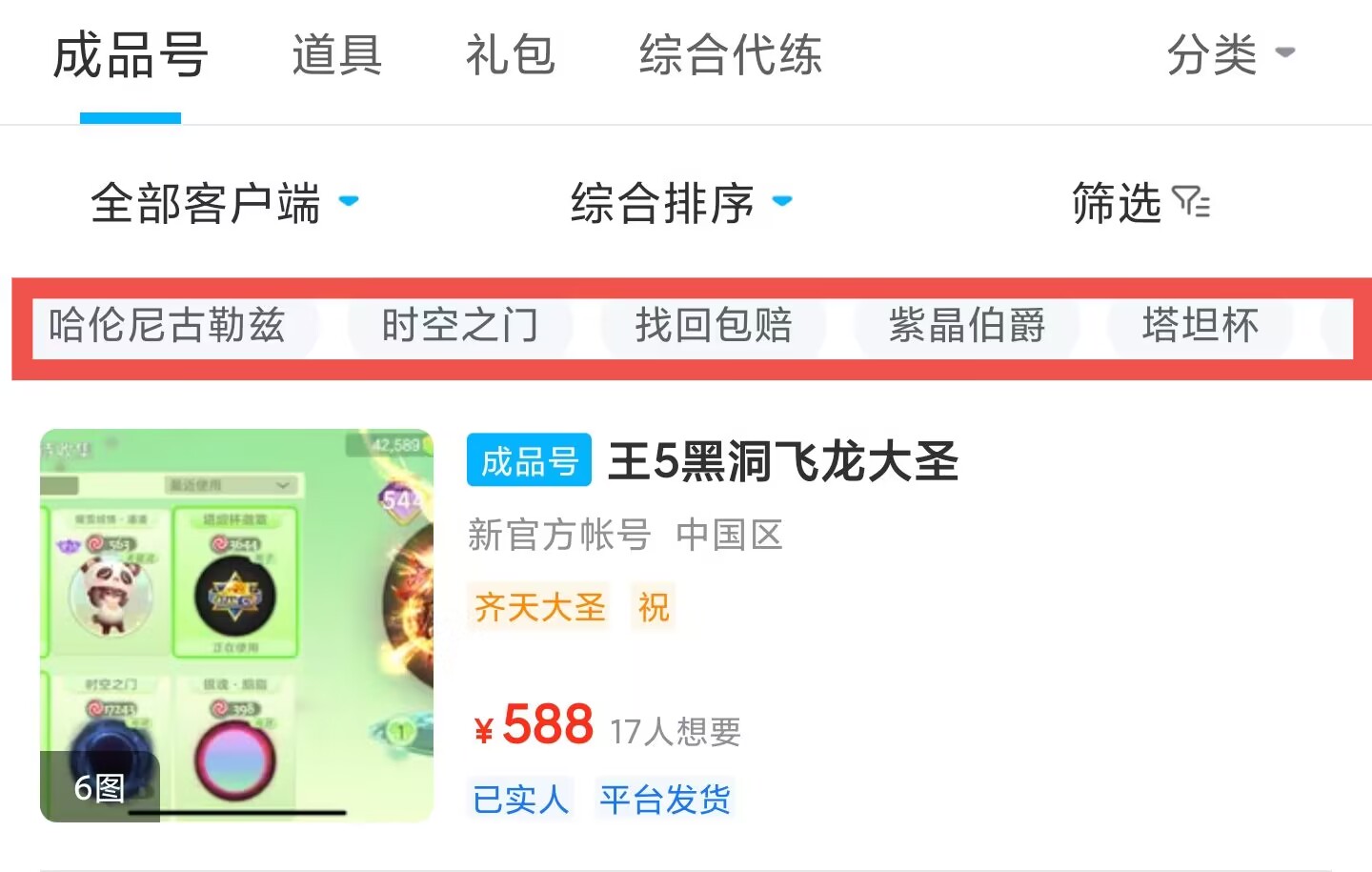 很多卖家表示在平台内填写账号信息的时候,不知道哪些是重要的,除了本身自己氪金获取的皮肤之外,大家也可以来到游戏专区内查看客户端和排序列表下面的一行关键词,类似于现在就是哈伦尼古勒兹皮肤、紫晶伯爵皮肤和坦塔杯皮肤,剩下的就是关于平台的保障措施关键词,大家要尽可能的对自己的产品介绍上包含这些,当然也要如实填写。