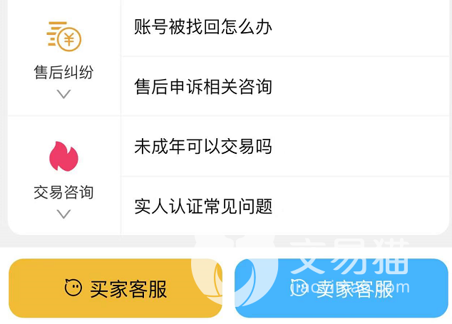 除此以外,他们的服务做的也是相当不错的,很少有平台会把买家客服和卖家客服给区分开来,交易猫这么做的目的就是为了能够减少排队的时间,在用户咨询问题的时候能够更加快速且精准的解答,对于一些需要时效性处理的问题,也能够确保第一时间得到解决。
