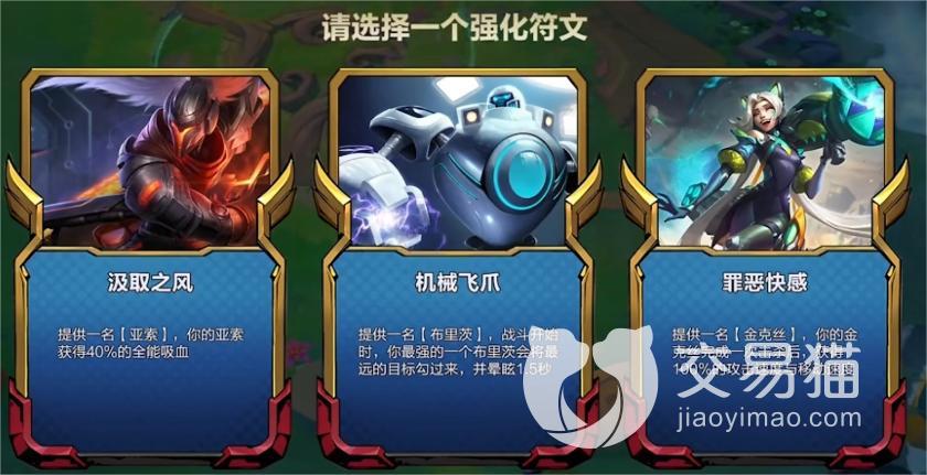 最后要说的这个机制,算是可以影响比赛走势的一个因素,那就是英雄强化,它每场对局都有几率代替海克斯符文出现,玩家可以获得技能或属性加强过的某个棋子,从而建立更强势的阵容!