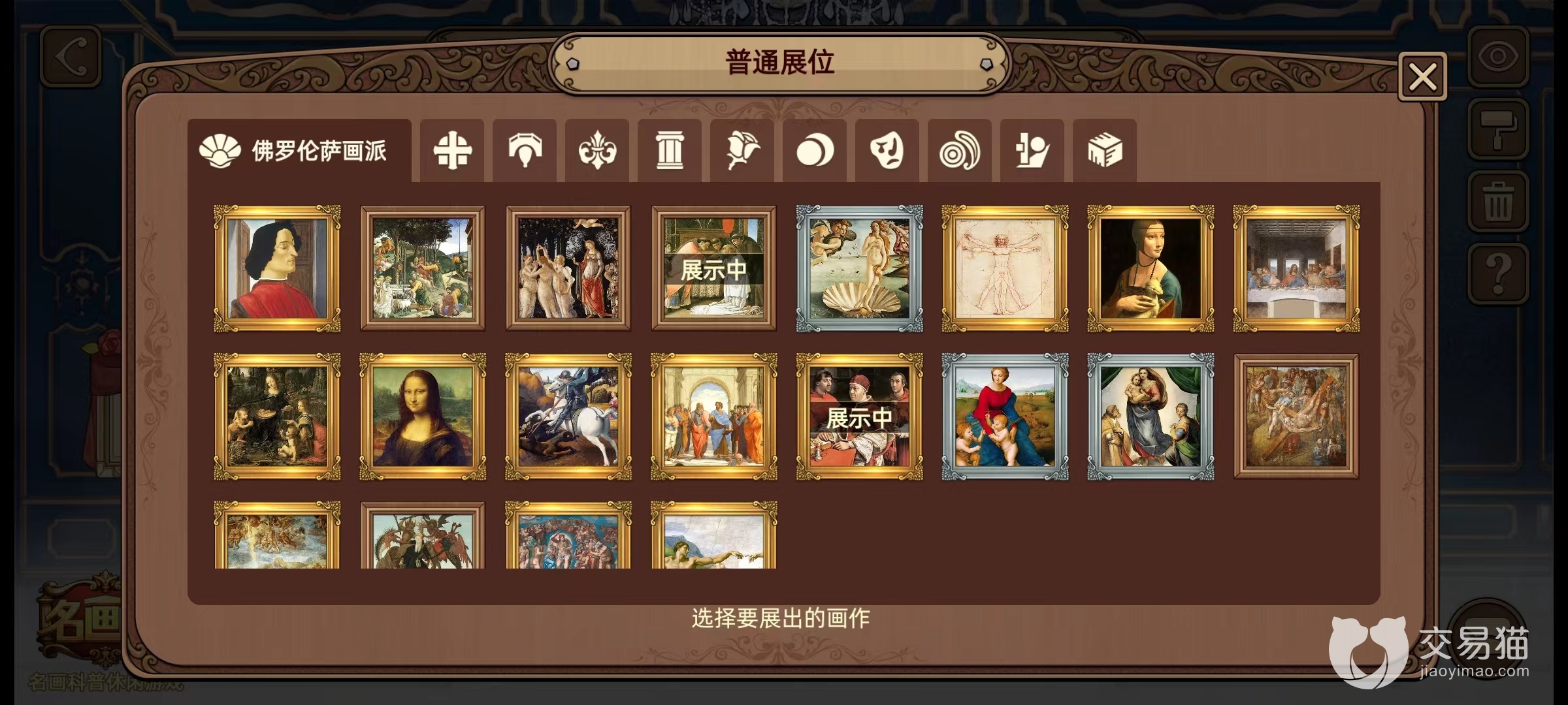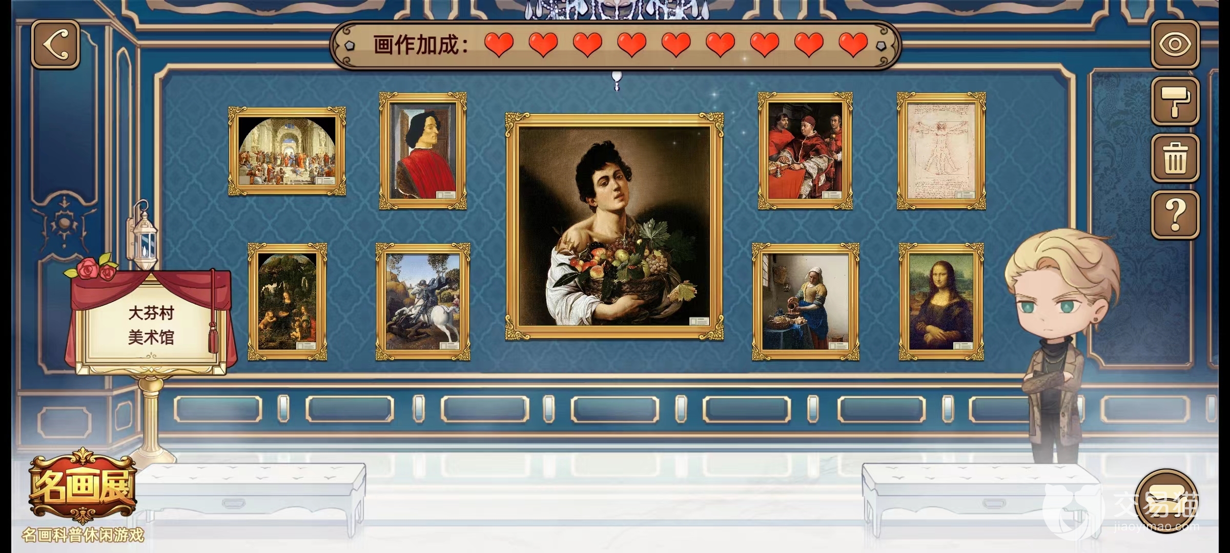 在名画展游戏中有展厅,可以将自己收集到画作挂在展厅,可以获得画作加成。那么名画展展厅怎么布置加成高?很多玩家都会选择挂自己喜欢的画,不考虑其他的因素,这样就很容易导致画展的加成很低,在画作鉴赏挑战中玩不过去。那么小编今天来给大家带来展厅布置一览。