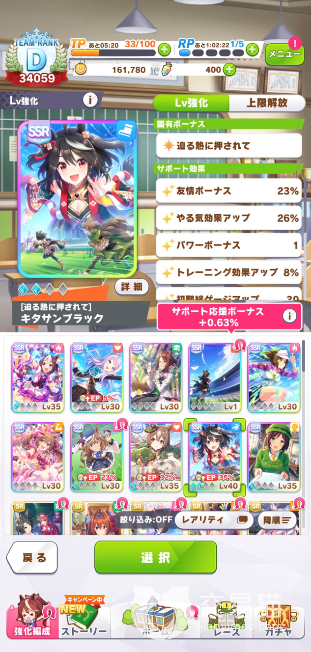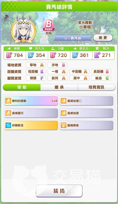 培养期的一些日常行为就比较简单了,就是和一般的体育游戏一样通过训练和比赛来提升自己的数值,当然这里还增加了二次元游戏常用的心情这个功能,以及外出散心之类。即便是培育出来,也并非每个赛场你的角色都能很好的发挥自身水准,有的角色天生不擅长某些地形以及赛道,这在角色详情里可以看到,所以一定要注意不同赛场使用不同角色。