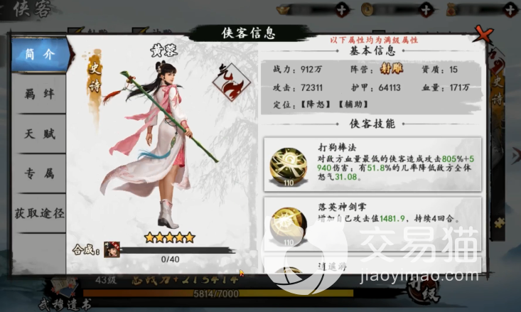 该角色和郭靖的定位比较相似,技能效果差不多,只不过郭靖是群体,黄蓉偏向单体但多一个眩晕,如果要配队的话,可以单独进任何一个体系,毕竟本身她的辅助技能比较万金油,就是加数值和控制,随便什么队伍都能进。