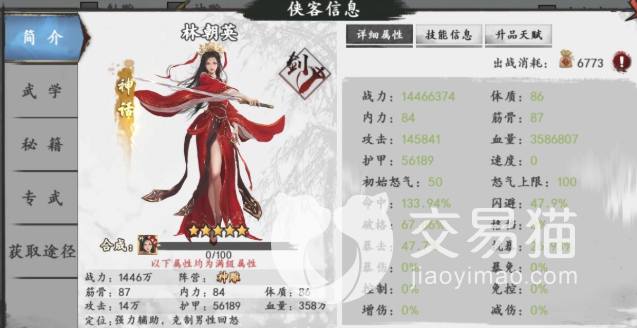 林朝英是《玉女心经》的作者,也是古墓派的创始人。该角色最大的特点就是降怒,以及控制敌人还有吸血平摊给大家,是半C半辅助,对于不少阵容的话有一定奇效,但是本身对于女队不太起作用,因为女性角色吃不到林朝英的降怒,总的来说也是一个多面手,相对比较万金油。