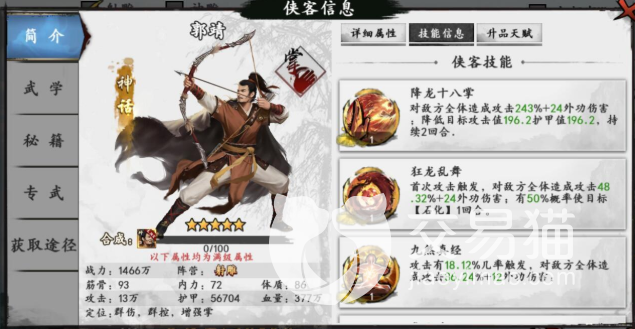 新射雕群侠传之铁血丹心神话角色哪些强 好用的神话角色推荐