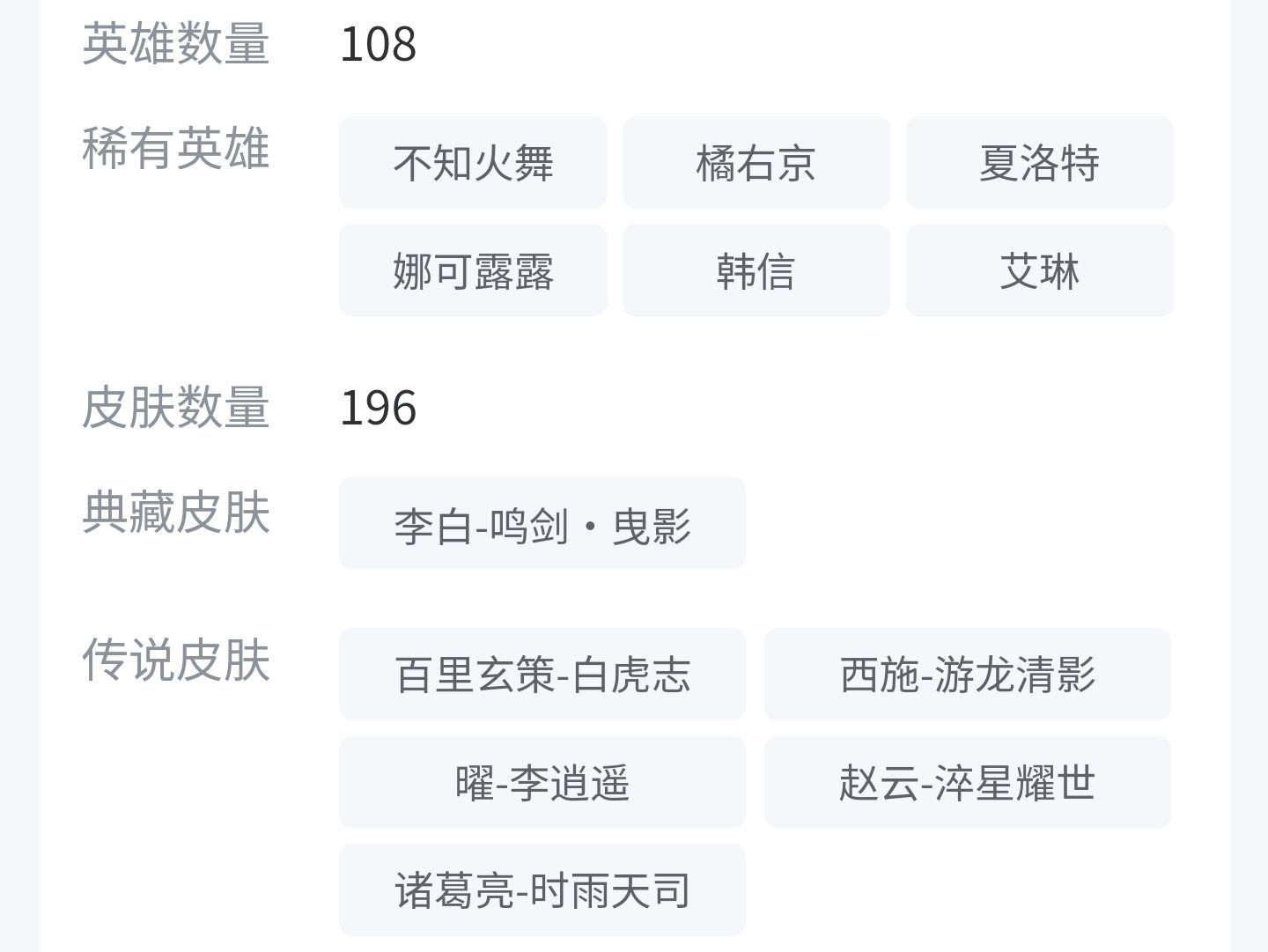 该游戏账号整体价值是比较值钱的,首先我们要搞清楚贵族八应该是在游戏内氪金5000元才可以达到的一个等级,这里所指的氪金并不完全是等同于购买了皮肤和相关的战令等等,分为多种情况:一种是抽了两个荣耀水晶,账号顶多值不到500;一种是全部购买了皮肤和战令,这也要看皮肤的稀有程度,价值在500以上800以内;最后一种是单纯的送皮肤号,意思就是氪金就是为了给他人送皮肤,这种没有任何价值。