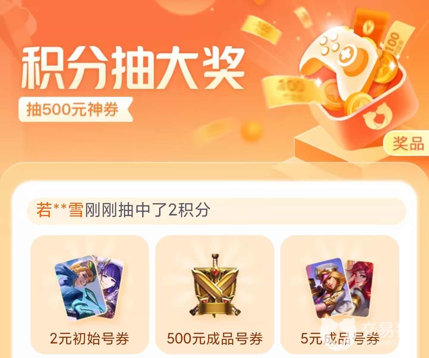 为了尽可能多的提高平台的订单交易成功率,除了每天登录都会获得一定的积分之外,运气好的买家也可以在大转盘模式中进行抽奖,运气好的话直接获得百元无门槛神券,不用花一分钱就可以购买逍遥情缘专区里的大多数游戏账号,一定的积分数量也可以在大家付款的时候抵扣现金。