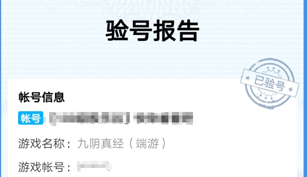 这个功能是平台组织专业的人员来对账号进行验证,验证过关的账号就会收到一份验号报告,验号报告同时显示在商品详情里面,所有人都可以查看。购买经过平台验证过的账号可以更加安全放心,并且在下单以后买家也能亲自通过截图来进行二次验号,确保万无一失。