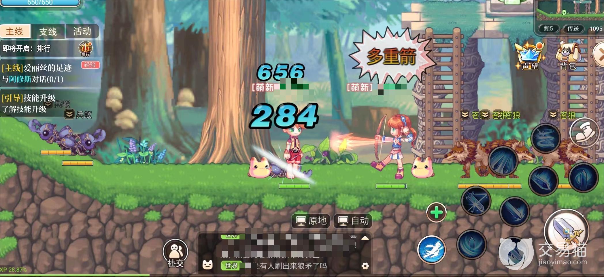 游戏初期,玩家所处的环境是在一片林地中,这里的草地生意盎然,通过传送阵还可以进到郊外,与其他玩家结伴共同对付狼群野怪,爆出来的道具画风也都简洁明了。
