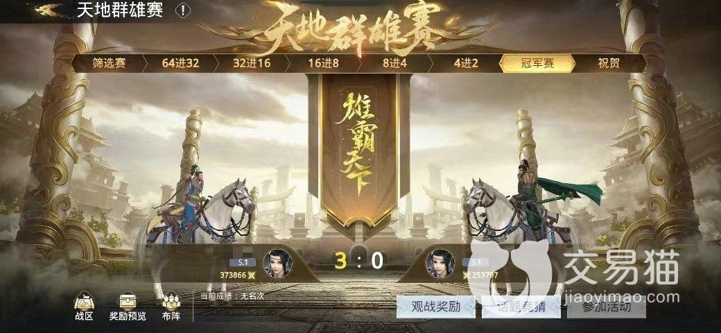 2022年11月23日的更新中,极无双2更新了一个全新的限时玩法,天地群雄赛。按照官方的定性,天地群雄赛就是跨服1v1的pvp战斗,模式里有几个阶段,从前往后依次是筛选赛,排名赛和决赛。