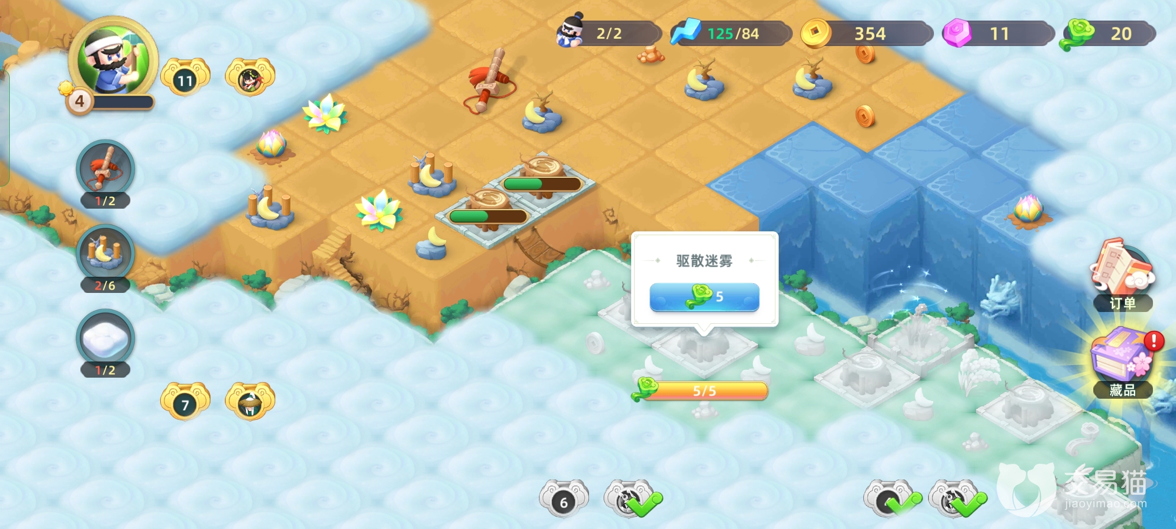 然后合成高级的建筑之后是要占用工匠去修筑的一般时间是几分钟的时间,这个时间工匠无法行动,所以玩家需要安排好,不然想要清障碍没人就尴尬了。