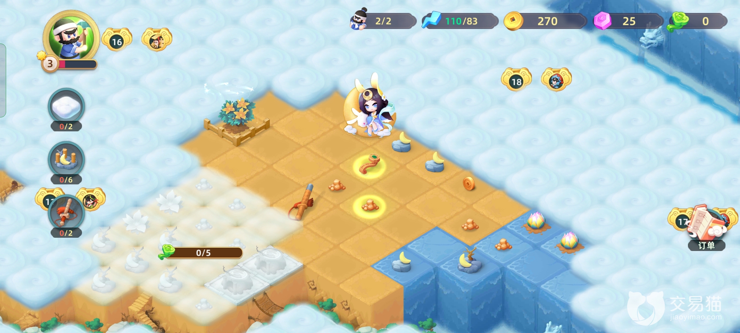 首先玩家进入游戏,需要合成月饼获得第一个npc,三和的方法就是两个连城一线然后将第三个物品和其中一个重合完成一次合成,和五子棋之类的相差很大,你补充和的话无论连多长都不会发生互动的。