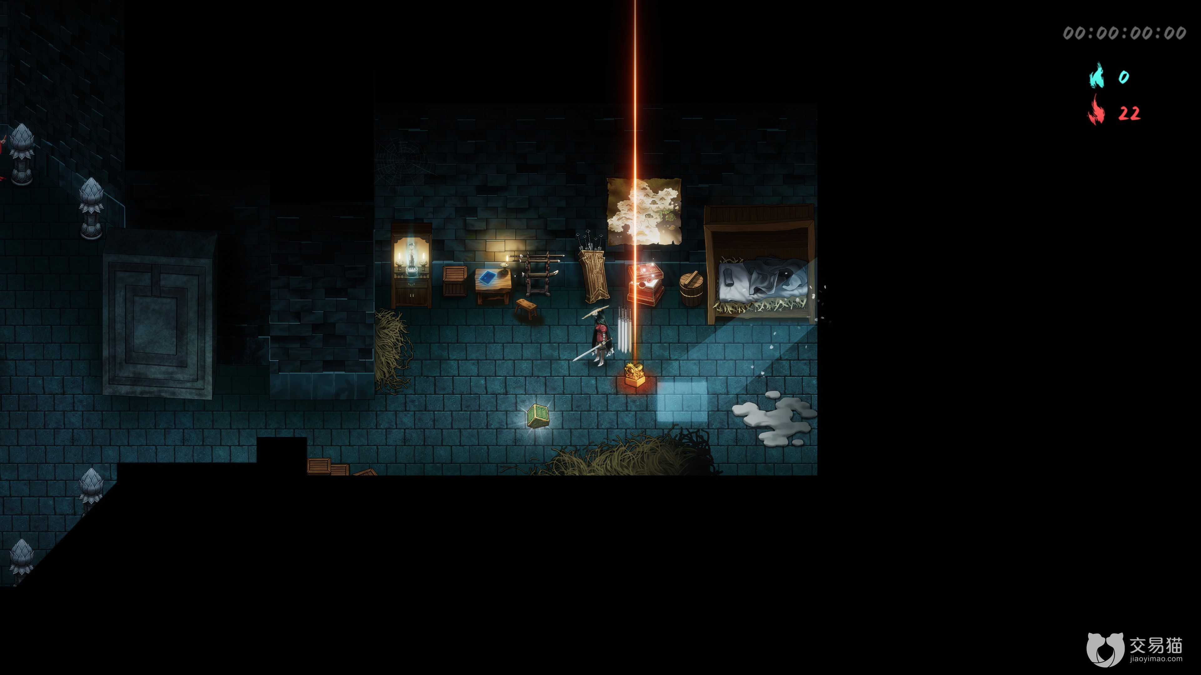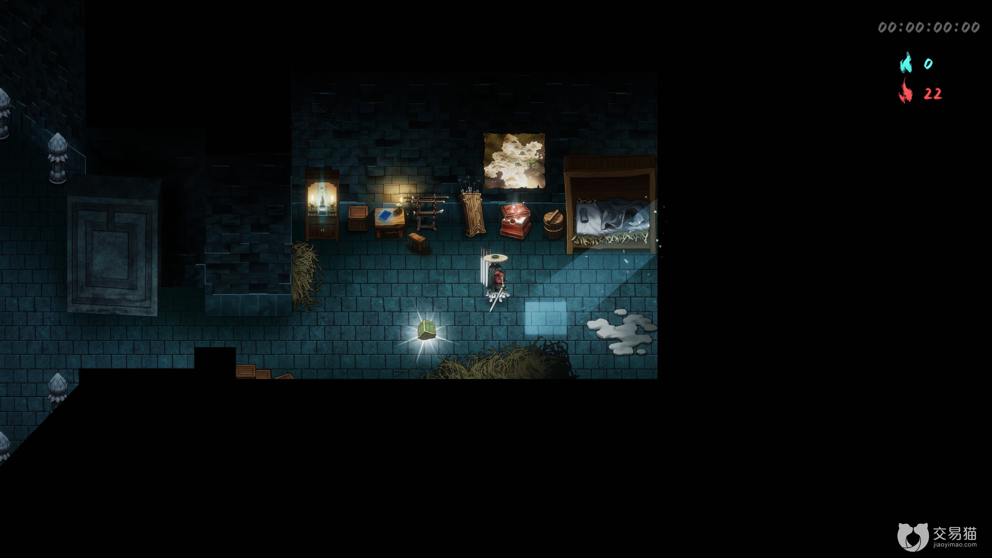 首先玩家开始游戏,如果玩家将所有的天赋点全了的话会在开局的这个位置随机刷新一个圣物,玩家点左上角的狭间当铺用重开游戏的方法就能无线刷新新的随机圣物了,直到刷新到这个物品再出门。